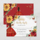 This pretty floral Quinceañera / Sweet 16 RSVP card features sunflowers, vibrant red rose flowers, a girl dressed in a glittery red and gold dress and red and gold butterflies. Simply click the customize it further button to edit the texts, change fonts and fonts colors. Matching items available in store. (c) Somerset Fine Paperie