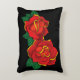 Two red roses in a backdrop of black all drawn in a traditional tattoo style