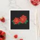 Two red roses in a backdrop of black in a traditional tattoo style.