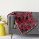 This pretty floral throw blanket is decorated with a repeating abstract pattern of red roses on a pure black background. What a lovely gift for gardeners!