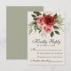 Elegant RSVP card design featuring red and pink watercolor roses with muted green foliage on a soft beige background. The reverse side of the card showcases a sophisticated sage green colour, creating a cohesive and stylish look. Perfect for coordinating with your wedding theme, this customisable RSVP card adds a romantic and elegant touch to your wedding stationery suite.