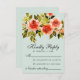 Elegant RSVP card design featuring red watercolor roses, green foliage on a mint coloured background. Reverse side of the card is also in the mint green colour.
