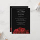A timeless design featuring elegant white lettering and vibrant red roses set against a classic black backdrop.