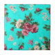Elegant vintage rustic red roses and white daisies pattern on blue-green background.