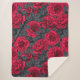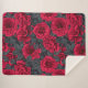 Red roses with grey leaves on black sherpa blanket