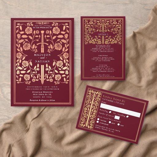 Red Royal Mediaeval Sword Wedding Flat Menu