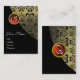 RED RUBY DAMASK MONOGRAM,grey Business Card