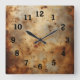 red rust on steel square wall clock