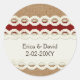 Red Rustic burlap and lace country wedding Classic Round Sticker