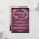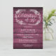 An elegant rustic celebration of life remembrance invitation featuring a hand-drawn foliage garland on a red wood panels background with a special photo on the reverse. Designed by Thisisnotme©