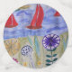 On a sunny summer day the hill overlooking the sea is covered with gorgeous, colourful flowers. There is a strong warm breeze and many boats with bright red sails are sailing on the blue waters of the bay. This is a cheerful, vibrant watercolor that will bring a splash of bright colour to your home.