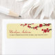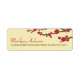 An original illustration of beautiful red cherry blossoms or sakura spring flowers with dark brown branches on a light yellow cream background. This is a modern wedding return address label / mailing label.