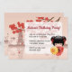 Red Sakura Kokeshi Doll Cute Geisha Birthday Party Invitation
