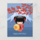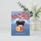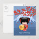 Red Sakura Kokeshi Doll, Cute Geisha Birthday Postcard