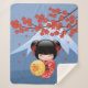 Red Sakura Kokeshi Doll - Cute Geisha Girl Sherpa Blanket