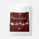 Send your guests off with a sprinkle of Christmas magic using this whimsical holiday Red Santa's Sleigh and Reindeer Favour Bag. Featuring Santa’s sleigh and flying reindeer soaring across a snowy background filled with white snowflakes and sprigs of holly berries. The joyful message Merry Christmas is styled in classic holiday typography, making this bag the perfect finishing touch to your festive celebration.