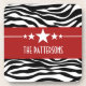 Trendy and modern Sassy Star Zebra Coaster Set featuring a chic black and white zebra print background and a bold red border adorned with a fun star motif. This girly design may be customised with the personalised text of your choosing. Click "Customise It" to find more personalisation options.