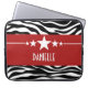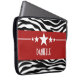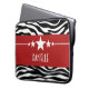 Trendy and modern Sassy Star Zebra Laptop Sleeve featuring a chic black and white zebra print background and a bold red border adorned with a fun star motif. This sleeve is perfect for protecting your gadget with style! This girly design may be customised with the personalised text of your choosing. Click "Customise It" to find more personalisation options.