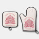 Red Scandinavian Folk Art Christmas Tree Oven Mitt & Pot Holder Set