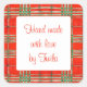 RED SCOTT TARTAN 1.5" Square "Hand Made" Stickers