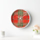 RED SCOTT TARTAN Round White Frame Wall Clock