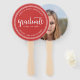 Stylish round hand fans featuring a white stripes border and the word "Graduate" in trendy brush script against a red background on the front. On the back you can add the graduate's photo.