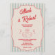 Red Script Blue Stripes QR Code Retro Wedding Invitation