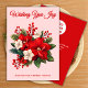 A vibrant red holiday card with classic script for bold brand impact. Ideal for client outreach.