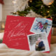 This festive holiday card features elegant white script against a bold red background, paired with a two-photo collage to showcase your favourite winter memories. Designed to feel warm, stylish, and personal, it’s a perfect way to send heartfelt Christmas and New Year wishes.