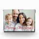 Celebrate the warmth of the season with this custom family Christmas photo block, perfect for gifting or displaying as part of your holiday home decor! Featuring a favourite photo with joyful red script text reading MERRY CHRISTMAS and your personalised family name and year. This photo gift adds a heartfelt touch to any space.