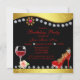 Elegant Personalised Red Shoes, Wine & Jewels 50th Birthday Invitation. The design has colourful bling, rhinestones, glitter, flower, glass of wine with black and gold background. Perfect for girls who loves shoes, glitters and sparkles!