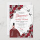 Red & Silver Butterfly Princess Quinceanera Birthday Invitation
