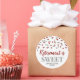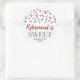 Retirement is sweet favour tag sticker with red and silver confetti pattern.