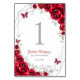 Red Silver Floral Quinceanera Table Number