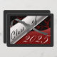 Red and silver graduation card with a diploma and year of graduation on it. The back is a grey background with white lettering for the graduation party invitations.