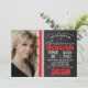 Red & Silver Grey Chalkboard Graduation Photo Invitation