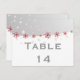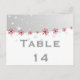 Red silver grey snowflake wedding table number postcard