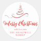 Red Silver Ribbon Tree Merry Christmas Script Classic Round Sticker