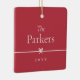 Sweet and simple Christmas ornament features a minimalist layout, with your family name and the year in clean, classic serif typeface on a festive red background. A petite bow through the centre completes the design. Add a photo to the reverse side, accented with a matching bow illustration.