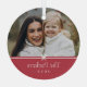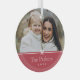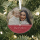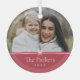 Sweet and simple Christmas photo ornament features a minimalist layout, with your family name and the year in clean, classic serif typeface on a festive red background. A petite bow beneath your photo completes the design.