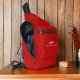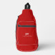 A custom sling style backpack with simple minimalist styling, this design in vivid red with white lettering has a text template to personalise with your monogram initials and name. For the person on the go, it's a great choice for an active lifestyle. Use it for work, school, sports, travel and more to carry your essentials with you in style.