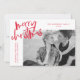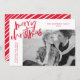 Send joy to friends and family with a Simply Merry holiday card by Late Bloom Paperie! The modern holiday card features "Merry Christmas" in a red hand-lettered brush script. Personalise the front of the card by adding your photo, custom greeting, family name, and the year. The card reverses to display a red and white diagonal stripe pattern.