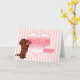 Unique and funny Dog Art painted by Naomi Ochiai from Japan. Cute and Funny Dachshund cartoon gift items for Dachshund fans!! An adorable Red Smooth Haired Doxie puppy is giving his/her tiny heart flower to his/her Mum. You can customise text and more! Pink and white stripes and shiny pink hearts design thank you card.