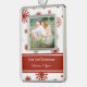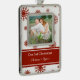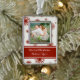 Couple's first christmas custom photo decoration in fun and modern red and white snowflakes pattern.