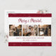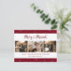 Red photo newlywed holiday postcard featuring snowflakes and a watercolor painting of poinsettia, connifer tree branches, holly and red berries. Easily personalize this festive newlywed holiday postcard with your photos, and text.