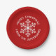 A white snowflake on a red background with "Merry Christmas" from the family around it.