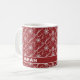 Cosy up to the season with this red mug featuring delicate white snowflake-inspired flowers, whimsical swirls, and dotted accents. The elegant pattern evokes winter charm without being overly seasonal, making it perfect for cocoa, coffee, or gifting. Add a name or monogram for a personal touch.