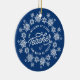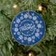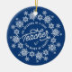 The influence of a good teacher Christmas Ornament featuring a navy blue background and a white snowflake border.