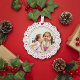 Celebrate the magic of Christmas with a gorgeous red snowflakes holiday photo paper ornament card that is sure to impress! The card features a beautiful round family photo with a border of red snowflakes on a white background, adding a touch of sophistication to your greeting. Your heartfelt Christmas wishes are written in curved text around the photo, making it an unforgettable keepsake. The back of the card includes a second family photo, making it an ideal way to share your cherished memories with your loved ones. The cover has been designed using some assets from Freepik.com
