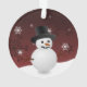 Add a whimsical touch to your Christmas tree with a Red Snowman Winter Scene Ornament. Ornament design features a happy snowman in a snowy wintry scene against a red background adorned with matching colour snowflakes. Additional gift and holiday items available with this design as well.